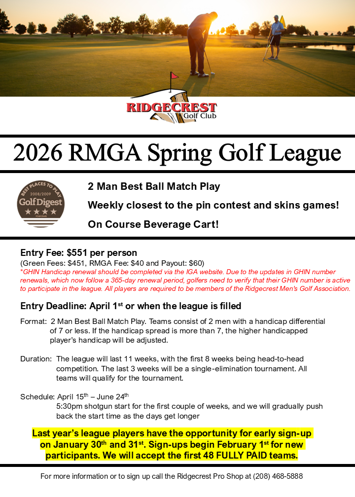 Get the latest news and specials from Ridgecrest Golf Club. Don't miss out!